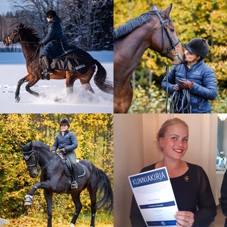 Hevosiin hurahdin jo ihan pikkutyttönä ja ensimmäisen oman hevosen hankin parikymmentä vuotta sitten. Tämänhetkinen ratsuni on kolmas oma hevoseni, 8- vuotias FWB- tamma Fiona, yhteistä taivalta meillä on takana viitisen vuotta. Fionan kanssa treenaamme pääsääntöisesti koulua, mutta välillä irrotellaan esteillä ja maastossa.