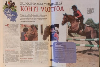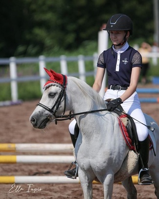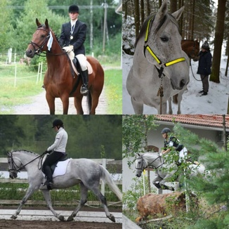 Meidän perheeseen muutti vuonna 2017 karvainen kaveri Kakku. Kakun kanssa aloin harjoittelemaan hyppäämistä ja sitä tavoitteellista ratsastamista. Kakun kanssa on tullut kilpailtua siitä lähtien 105cm tasolle asti. Vuonna 2020 sain uuden kilpahevosen Kanadan. Kanadan kanssa pitäisi päästä kilpailemaan isoja luokkia ja vaikeammalla tasolla. Olen kilpaillut Kanadan kanssa 115cm tasolle asti.