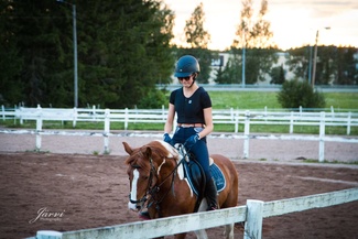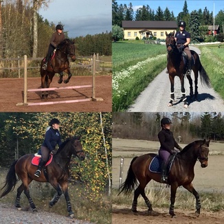 Ratsastanut olen n. 8 vuotta. Tp-tallilla olen aloittanut 2016 ja siellä ratsastan edelleen. Oon tallilla 2 kertaa viikossa toisena päivänä auttelemassa ja toisena itse ratsastamassa. Olen kisannut koulu- sekä estepuolella, tallin eri hevosilla. Nyt olen jo hetken ratsastanut Tp-tallin Tinolla, joka onkin mun lemppari!