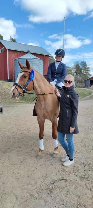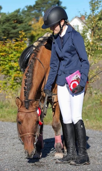 Meidän perheeseen muutti vuonna 2017 karvainen kaveri Kakku. Kakun kanssa aloin harjoittelemaan hyppäämistä ja sitä tavoitteellista ratsastamista. Kakun kanssa on tullut kilpailtua siitä lähtien 105cm tasolle asti. Vuonna 2020 sain uuden kilpahevosen Kanadan. Kanadan kanssa pitäisi päästä kilpailemaan isoja luokkia ja vaikeammalla tasolla. Olen kilpaillut Kanadan kanssa 115cm tasolle asti.