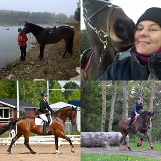 Hevosiin hurahdin jo ihan pikkutyttönä ja ensimmäisen oman hevosen hankin parikymmentä vuotta sitten. Tämänhetkinen ratsuni on kolmas oma hevoseni, 8- vuotias FWB- tamma Fiona, yhteistä taivalta meillä on takana viitisen vuotta. Fionan kanssa treenaamme pääsääntöisesti koulua, mutta välillä irrotellaan esteillä ja maastossa.