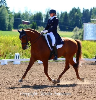 Viime vuonna aloin ratsastamaan Timo Hörkön hevosta Geishaa edellisen ratsastajan lähdettyä Saksaan. Geishan kanssa alku oli aika takkuinen, mutta pikkuhiljaa lähti yhteistyö rullaamaan ja tällä hetkellä meen viikottain Geishan sekä välillä muiden heppojen kanssa.